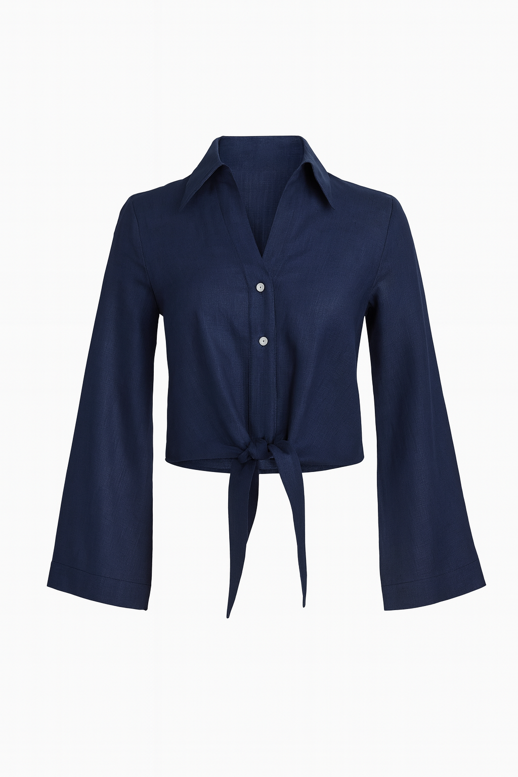%100 Keten Boy bel detayını öne çıkaran 2 sedef düğme ve bağlama detayı ile