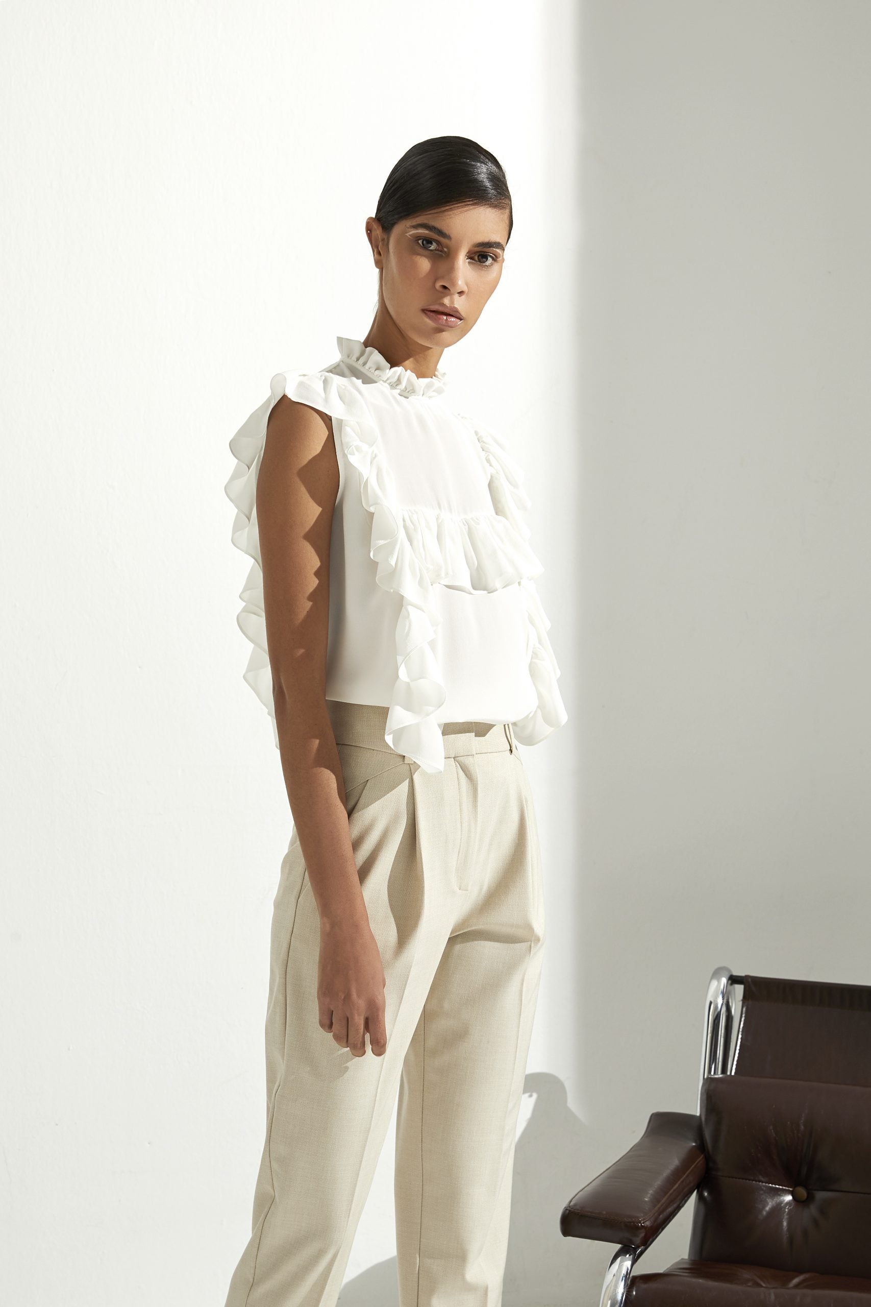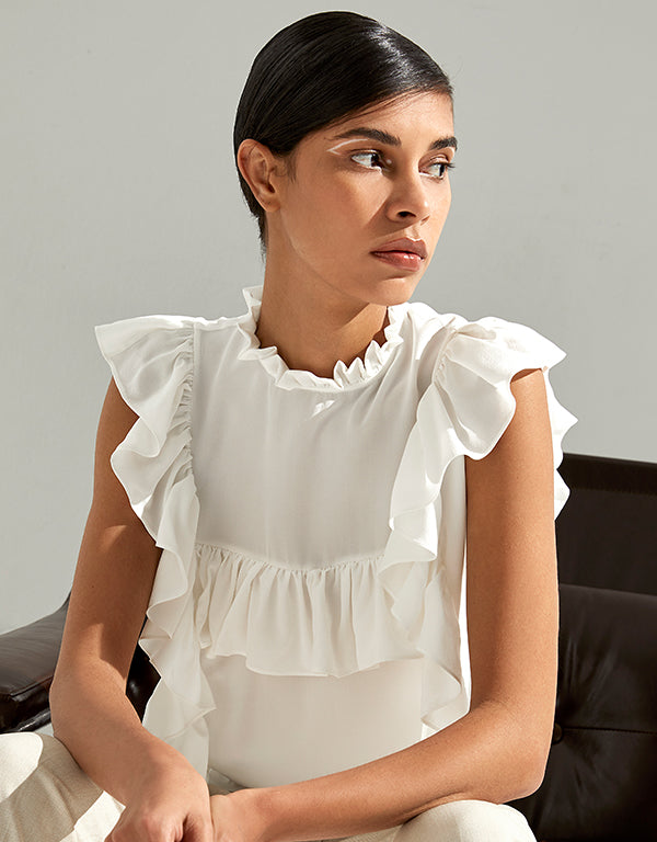 %100 İpek Iris White Shirt